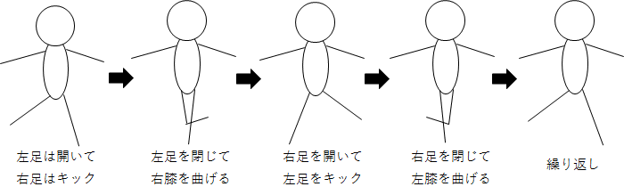 ステップの大まかなイメージはこれで掴めたと思いますので、細かい動きの説明に入りたいと思います。