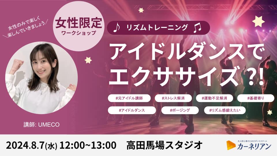 • アイドルダンスでエクササイズ?!女性限定リズムトレーニングワークショップのご案内 [2024年8月開催]