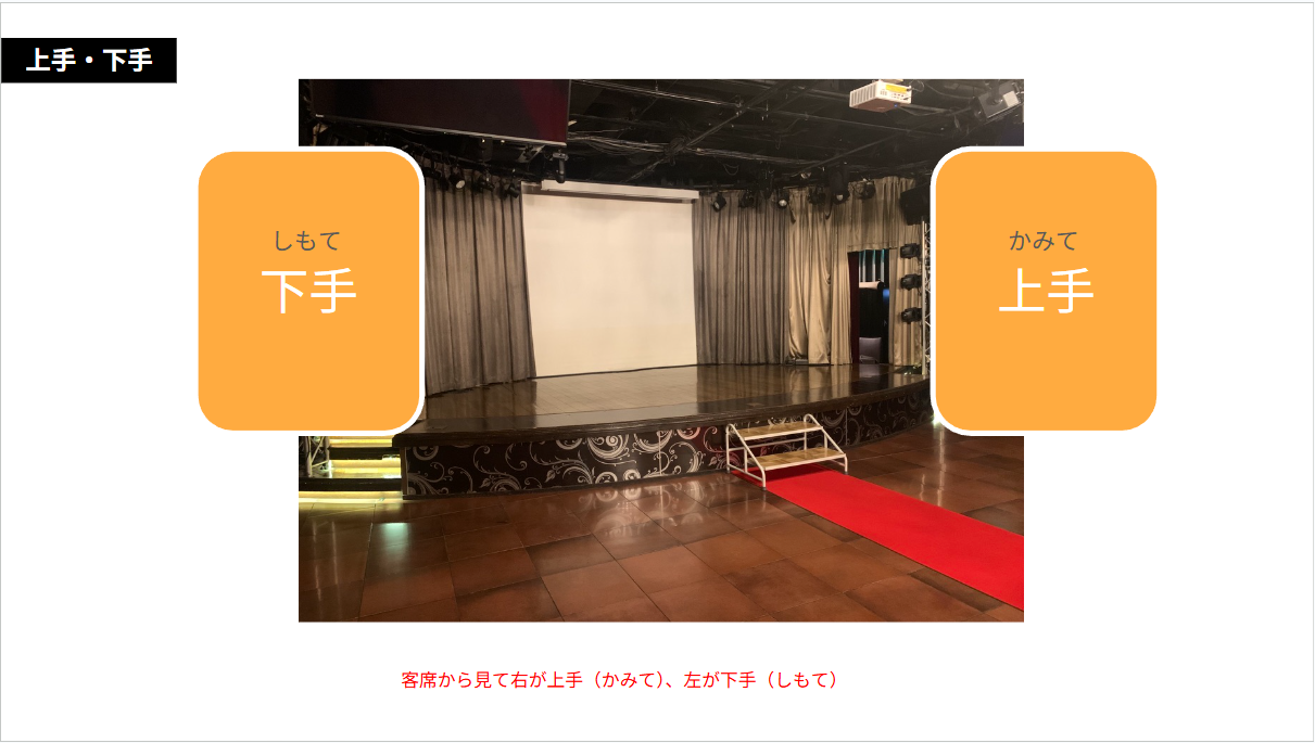 客席から見て右側が上手、左側が下手